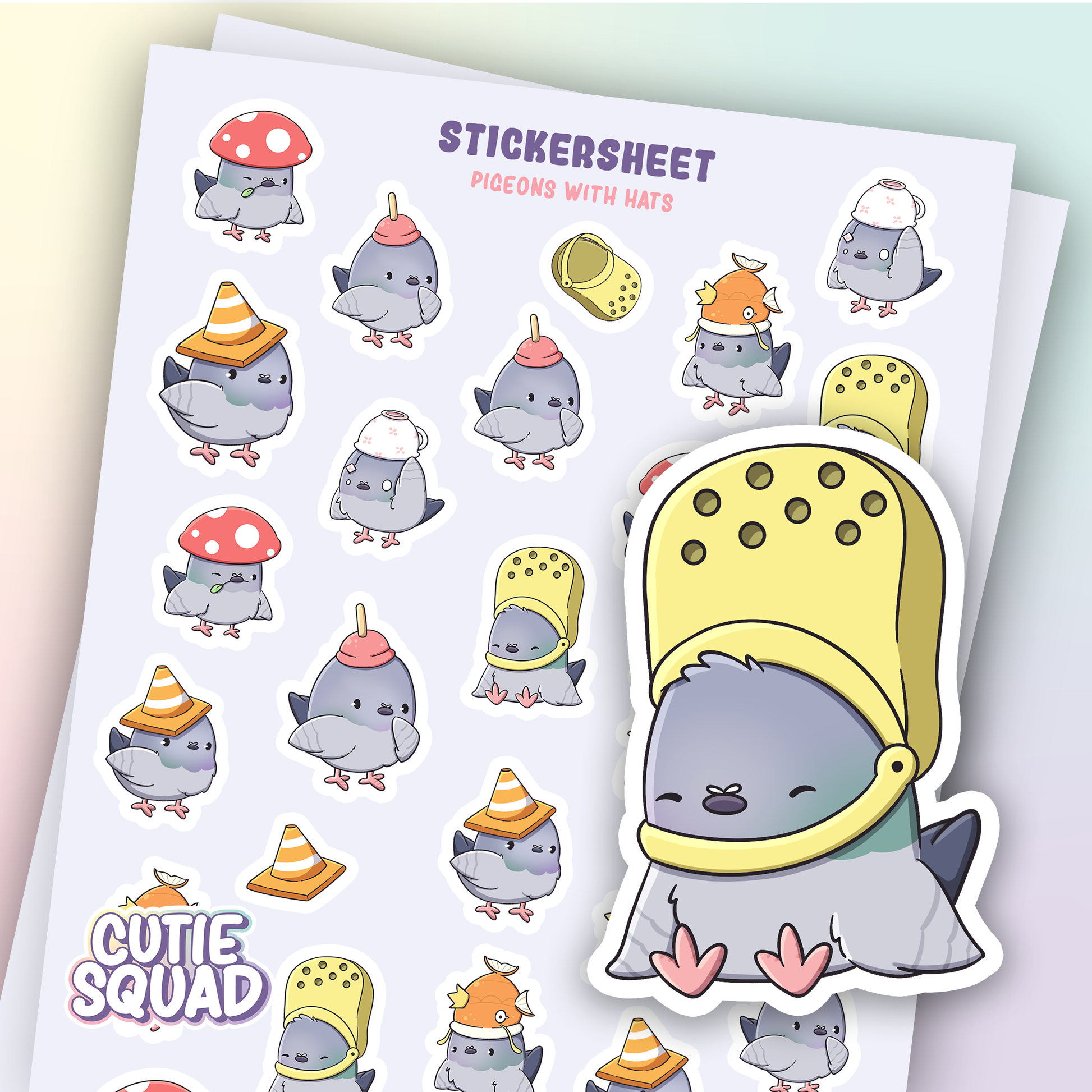 CutieSquad Sticker Sheet Pigeons with Hats
